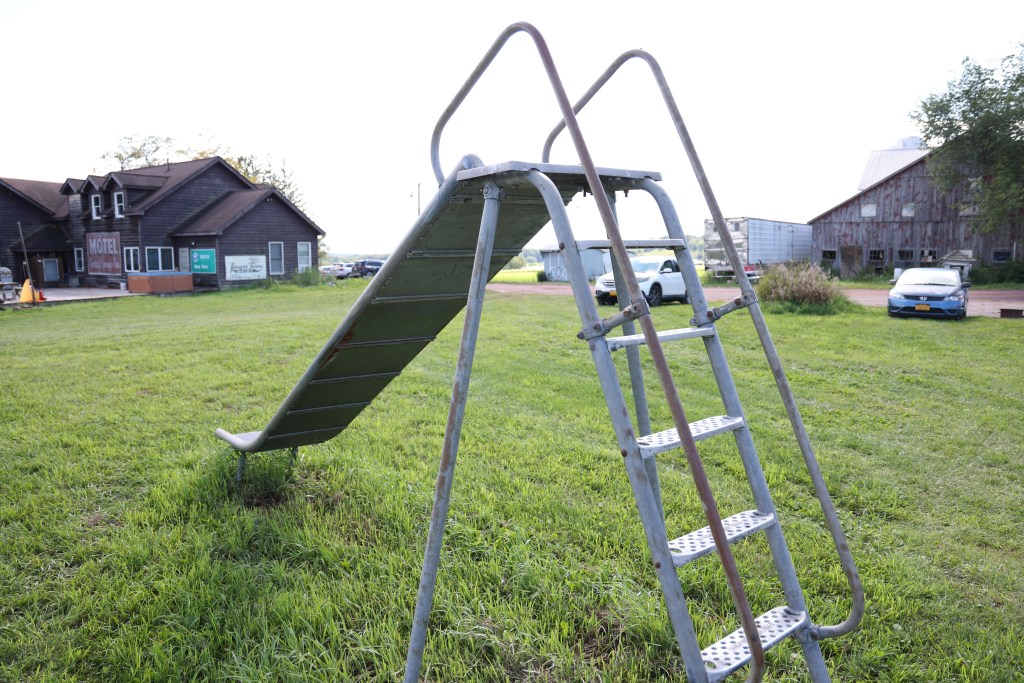 When I go, I camp there. I am familiar with the property, but very soon after I arrived this year, I noticed something: Two Merry-go-rounds (one working, one not) and a steel Slide, both of which are very close in design to those shown in my recent blog.